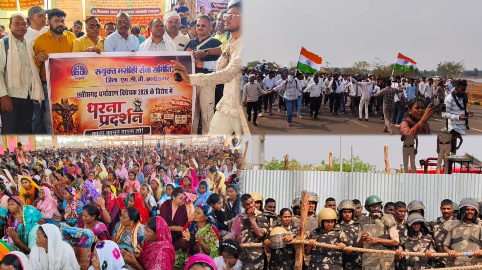 रायपुर (छत्तीसगढ़)। धर्म परिवर्तन कानून को लेकर छत्तीसगढ़ की राजधानी रायपुर में क्रिश्चियन समुदाय के लोगों में आक्रोश देखने को मिला। इसी के विरोध में बड़ी संख्या में लोगों ने शहर में विशाल रैली निकालकर अपना विरोध दर्ज कराया और राज्यपाल को ज्ञापन सौंपकर कानून को निरस्त करने की मांग की।