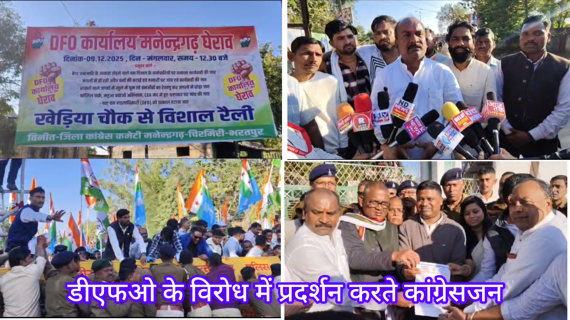 मनेंद्रगढ़ (छत्तीसगढ़)। जिले में जिला कांग्रेस कमेटी द्वारा मंगलवार को वन मंडल अधिकारी (DFO) की कथित मनमानी और कार्यशैली के विरोध में विशाल रैली-प्रदर्शन का आयोजन किया गया। प्रदर्शन के दौरान कांग्रेस कार्यकर्ताओं ने जोरदार नारेबाजी कर डीएफओ को हटाने की मांग उठाई और संबंधित विभाग को ज्ञापन भी सौंपा।