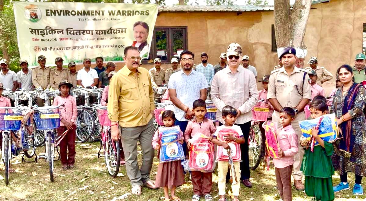 पीलीभीत/लखनऊ। पीलीभीत टाइगर रिजर्व स्थित मुस्तफाबाद फॉरेस्ट गेस्ट हाउस में “एनवायरनमेंट वॉरियर्स: द गार्जियंस ऑफ द ग्रीन” अभियान के नौवें चरण के तहत साइकिल एवं स्कूल किट वितरण कार्यक्रम आयोजित किया गया। कार्यक्रम में मुख्य अतिथि के रूप में विधायक डॉ. राजेश्वर सिंह उपस्थित रहे।