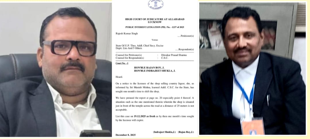 सरोजनीनगर, लखनऊ। राजधानी लखनऊ के पीजीआई थाना क्षेत्र के अंतर्गत ईश्वरी खेड़ा इलाके में मंदिर से 25 मीटर दूरी के ठीक सामने शराब की दुकान को लेकर बीते दिनों में सरोजनीनगर बार एसोसिएशन के अध्यक्ष राजेश कुमार सिंह व महामंत्री गोविंद प्रताप शुक्ला सहित स्थानीय लोगों ने विरोध जताया था और इसको लेकर राजेश कुमार सिंह अध्यक्ष ने हाई कोर्ट में जनहित में याचिका दायर की थी।