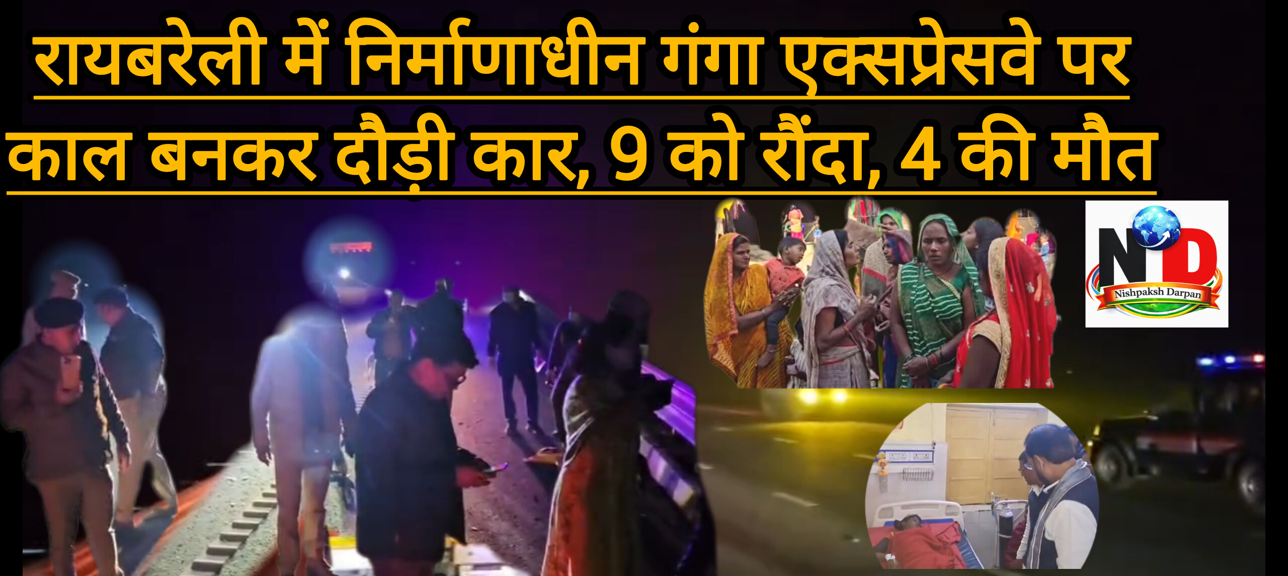 यूपी के रायबरेली में निर्माणाधीन एक्सप्रेसवे पर कार से भीषण सड़क हादसा, लगभग एक दर्जन में 9 को रौदा, 4 की मौत, 5 घायल