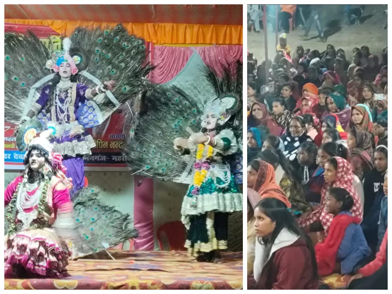 पूरी रात चले इस कार्यक्रम में कलाकारों ने धार्मिक प्रसंगों पर आधारित आकर्षक झांकियों का मंचन किया। उनके प्रस्तुति कौशल और भावपूर्ण अभिनय ने दर्शकों में अद्भुत श्रद्धा और उत्साह भर दिया।