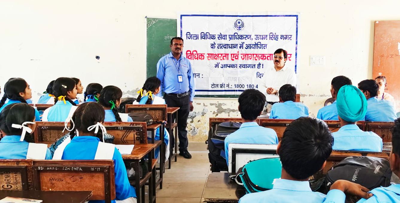 बाजपुर, उधम सिंह नगर। जिला विधिक सेवा प्राधिकरण उधम सिंह नगर के तत्वाधान में राजकीय उच्चतर माध्यमिक विद्यालय रेहटा, बाजपुर में विधिक साक्षरता एवं जागरूकता शिविर का आयोजन किया गया।