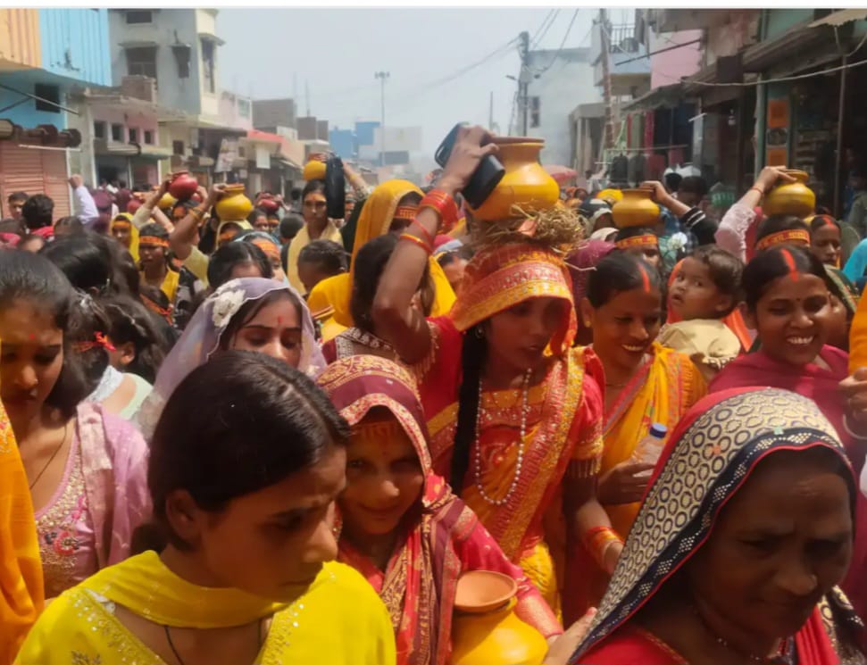 बृजमनगंज (महराजगंज)। नगर पंचायत बृजमनगंज में शनिवार की सुबह शतचंडी महायज्ञ के शुभारंभ अवसर पर भव्य कलश यात्रा धूमधाम से निकाली गई। इस दौरान नगर सहित आसपास के गांवों से बड़ी संख्या में श्रद्धालु शामिल हुए और पूरा क्षेत्र भक्तिमय माहौल में डूब गया।