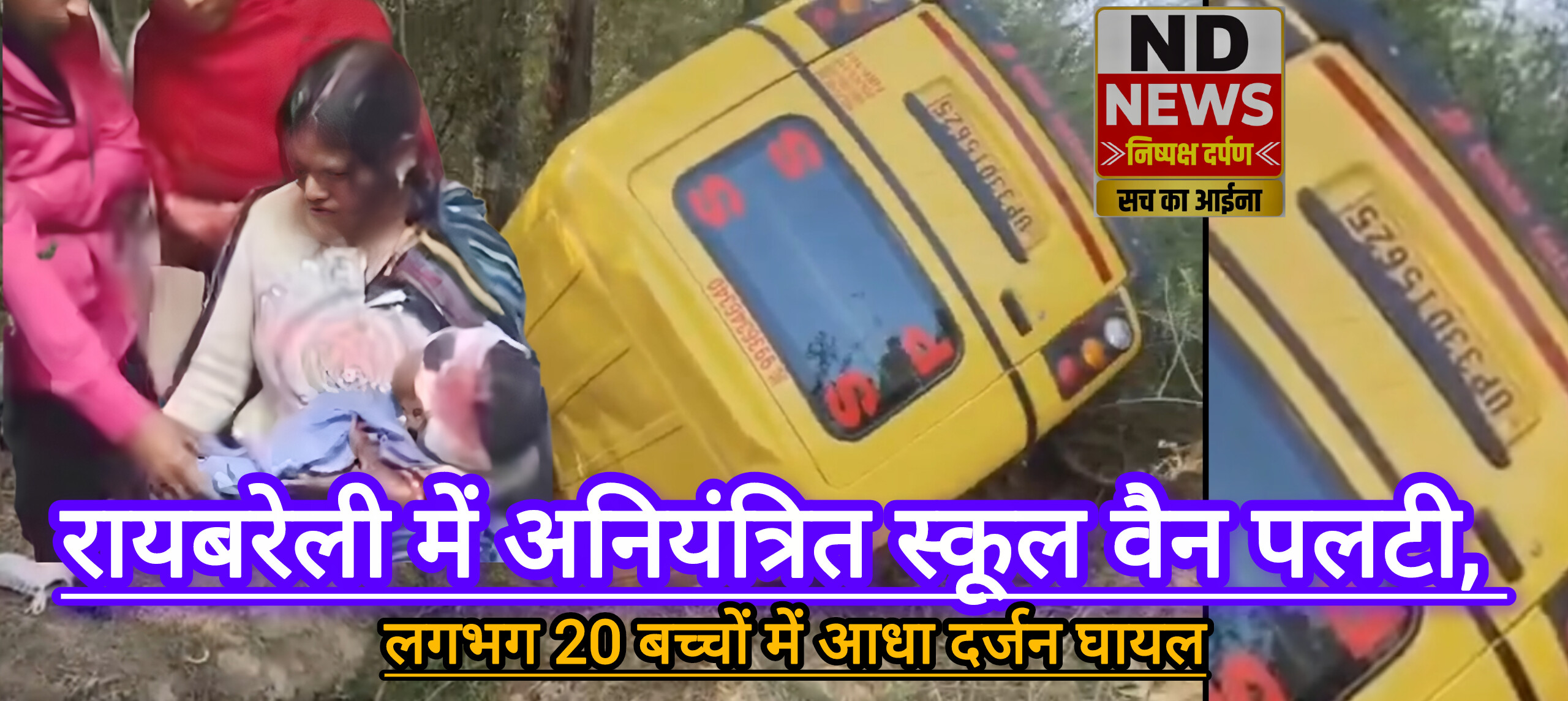 रायबरेली में अनियंत्रित स्कूल वैन पलटी, मची चीख-पुकार में आधा दर्जन मासूम घायल