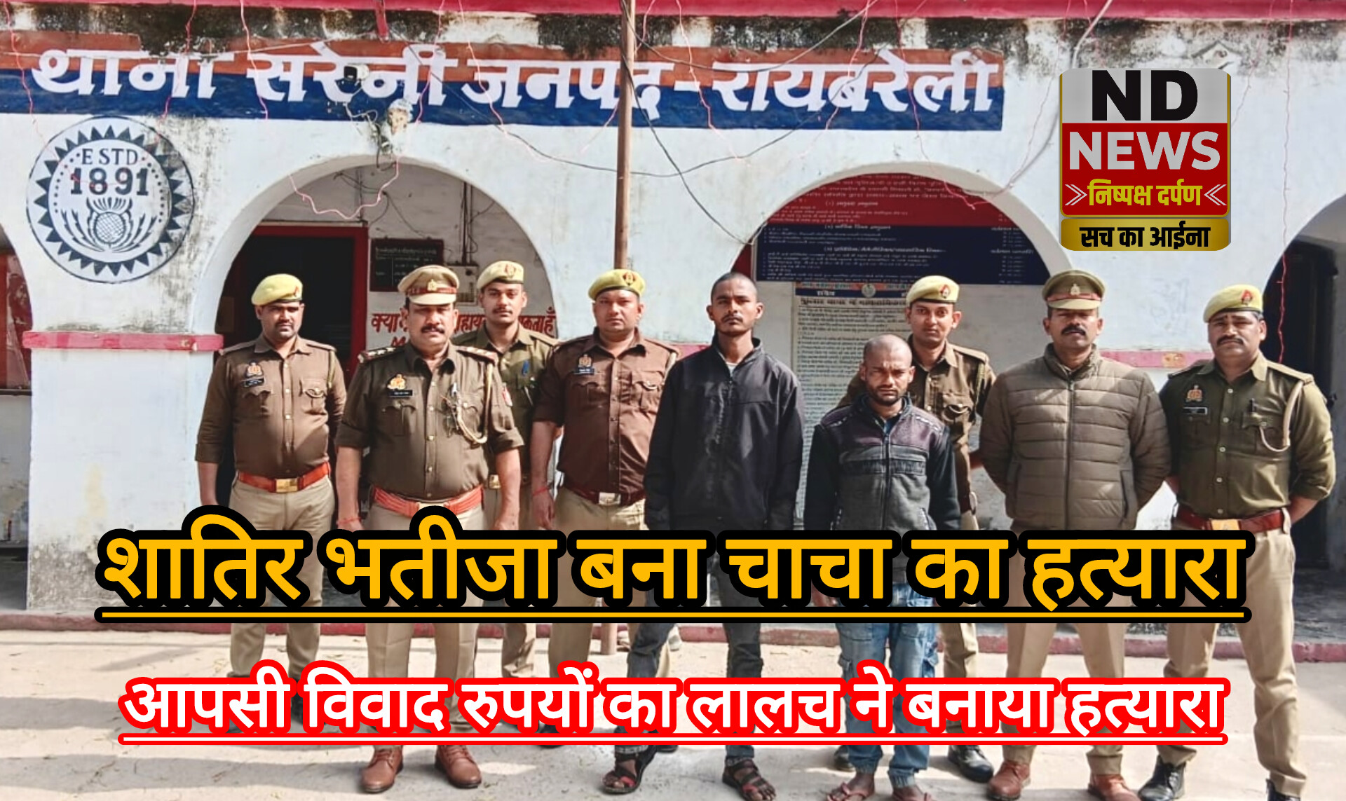 मुखबिर की सूचना थाना सरेनी व एसओजी/सर्विलांस की संयुक्त पुलिस टीम द्वारा पंजीकृत मु0अ0सं0- 16/2026 धारा- 103 (1)) बीएनएस व बढोत्तरी धारा-238 बीएनएस के वांछित अभियुक्त में अजीत उर्फ गद्दर पुत्र रामकुमार निवासी पासिन का पुरवा मजरे बंडई सरेनी सहित सूरज उर्फ टुन्नू पुत्र रामचन्द्र उर्फ महंगू निवासी पासिन का पुरवा मजरे बंडई सरेनी रायबरेली को थाना क्षेत्र के नहर पुलिया बंडई के पास से गिरफ्तार कर लिया गया।