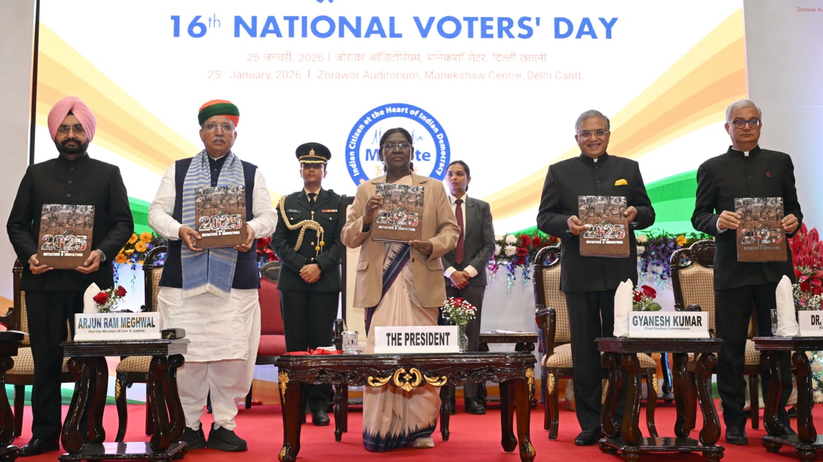नई दिल्ली। भारत की राष्ट्रपति द्रौपदी मुर्मू ने 25 जनवरी 2026 को नई दिल्ली में आयोजित 16वें राष्ट्रीय मतदाता दिवस समारोह में भाग लिया और कार्यक्रम को संबोधित किया।