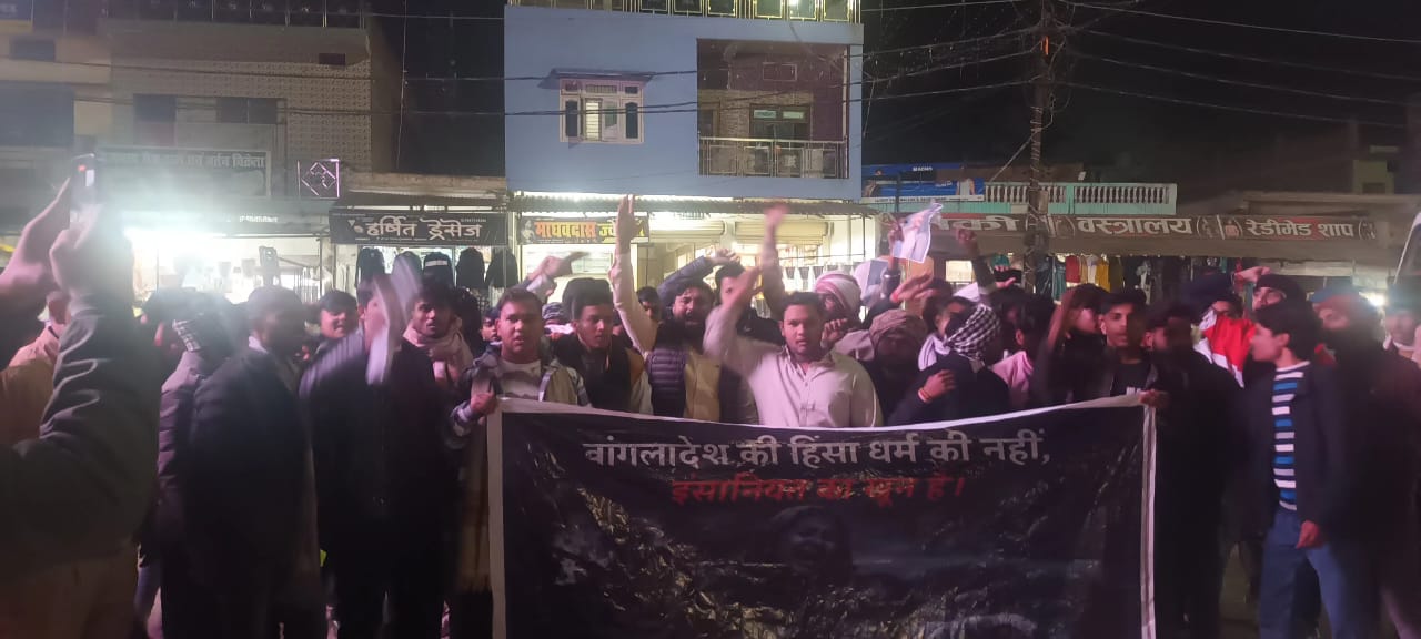 जुलूस में शामिल युवाओं के हाथों में बैनर-पोस्टर भी थे, जिन पर “बांग्लादेश की हिंसा धर्म की नहीं, इंसानियत का खून है” जैसे भावनात्मक और तीखे स्लोगन लिखे थे, जो प्रदर्शनकारियों के आक्रोश और संदेश को स्पष्ट रूप से दर्शा रहे थे। कोल्हुई तिराहे पर पहुंचकर युवाओं ने बांग्लादेश का पुतला फूंका और वहां हिंदू समुदाय पर हो रहे कथित अत्याचारों को तत्काल रोकने की मांग की।